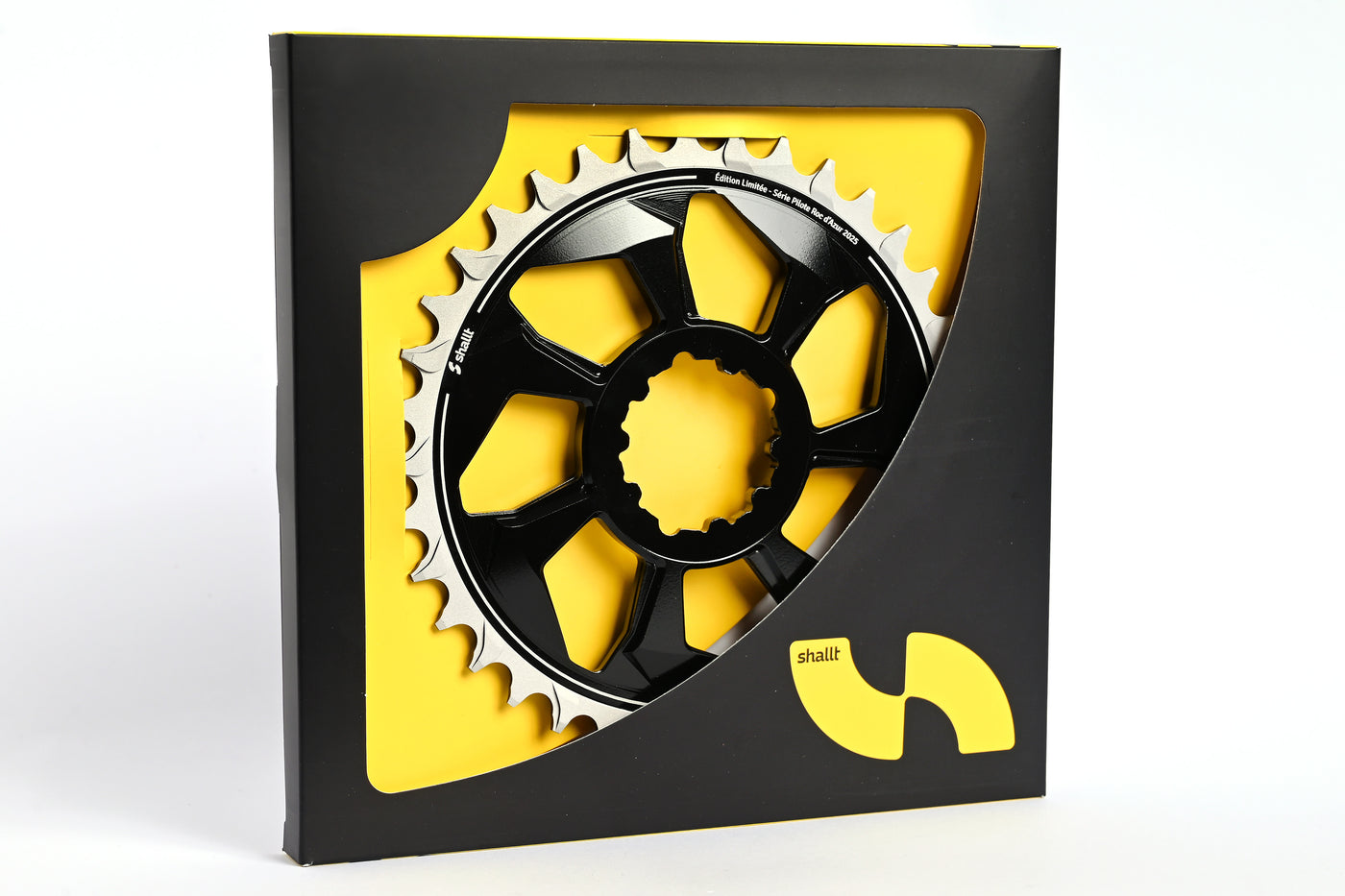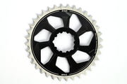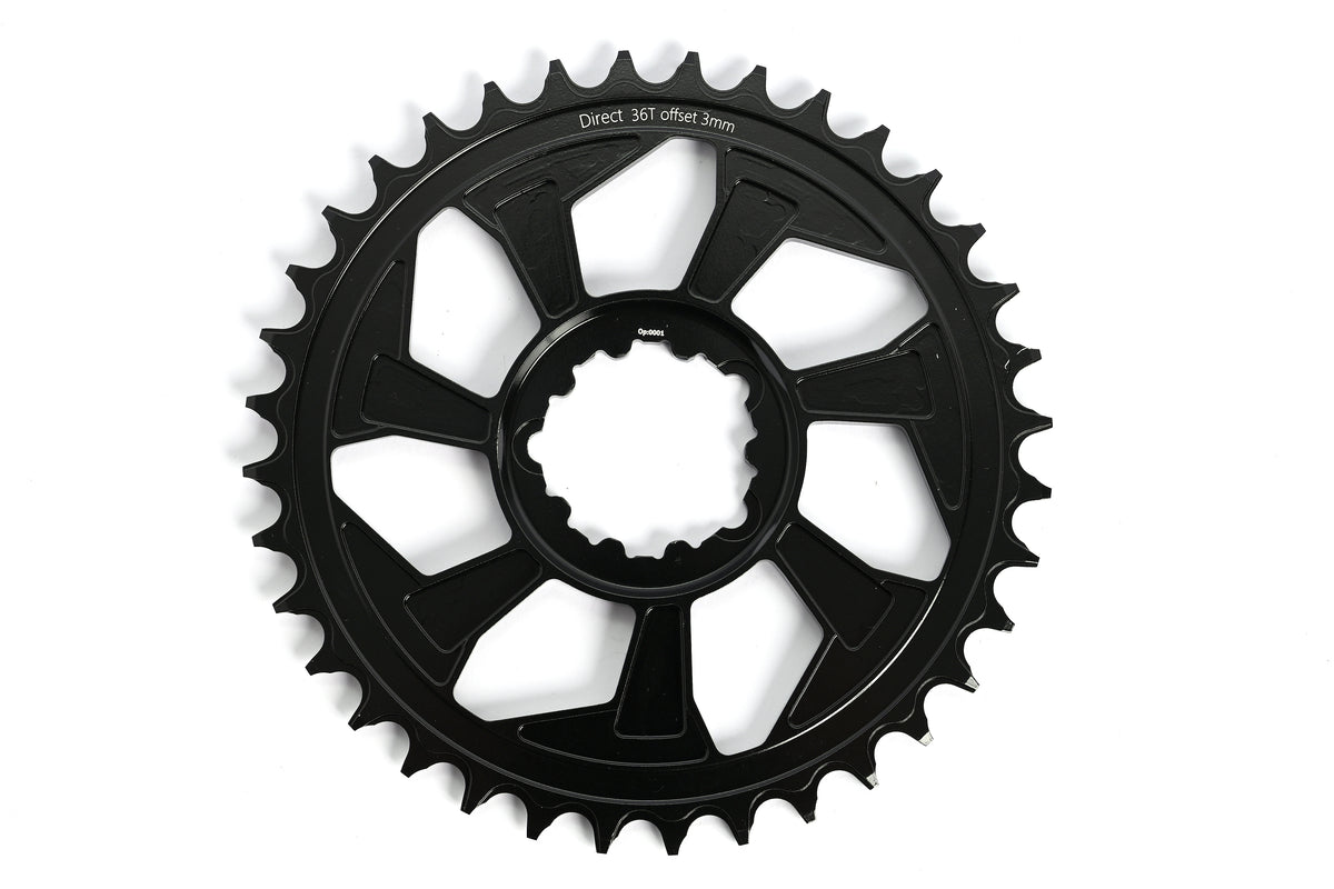Plateau Premium usiné en aluminium 7075-T6 aéronautique (CNC), compatible SRAM Direct 3-Bolt (offset 3 mm). Design épuré et léger avec finition cataphorétique noire. Narrow-wide pour une rétention de chaîne fiable et une usure homogène.